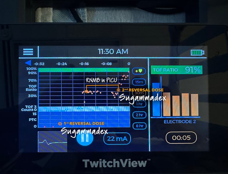 In a prospective, dose-finding study of adult patients, Bowdle et al. investigated the hypothesis that many patients could achieve adequate reversal with less than the manufacturer’s recommended dose of sugammadex, while a subset would require more. Among the 97 patients evaluated, 87% of patients (who received sugammadex) achieved adequate reversal (TOF Ratio ≥90%) below the label-recommended dosing. Of note, 13% of patients required doses exceeding the manufacturer's guidelines to achieve adequate recovery [13]. Inadequate reversal can result in significant complications, including respiratory insufficiency, aspiration pneumonia, prolonged hospital stays, and increased healthcare costs [1, 2, 13]. Bowdle’s findings, alongside the case presented, highlight the critical need for quantitative monitoring whenever a non-depolarizing neuromuscular blocking agent is administered.